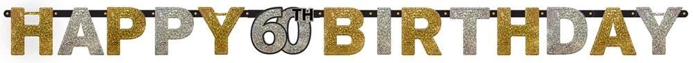 AMS Sparkling Celebration Happy Birthday 60 Letter Banner 1ct