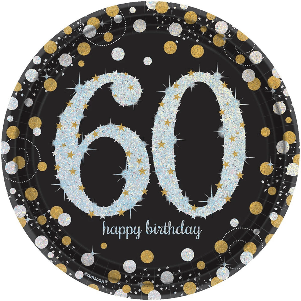 Sparkling Celebration Happy Birthday 60 Round Plates 9 inch 8ct