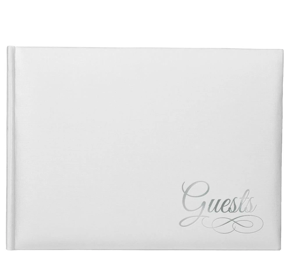 White Paper Guest Book with Silver Detail 1ct