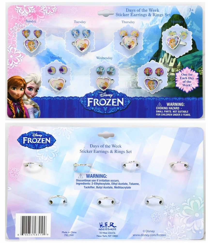 Disney Frozen 7 Day Ring-Earring Set 6.75×4.25×1