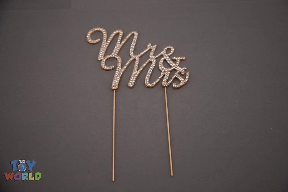 Rhinestone Cake Topper Mrand Mrs 4.5inWx3.5inH Gold